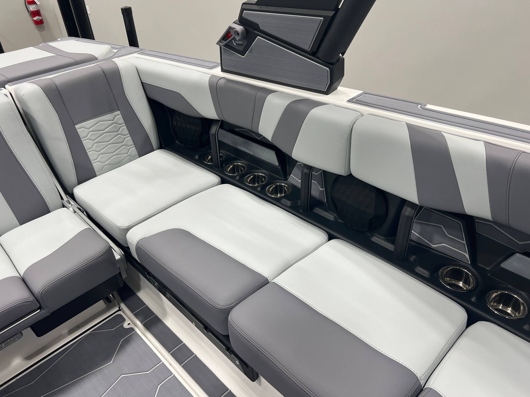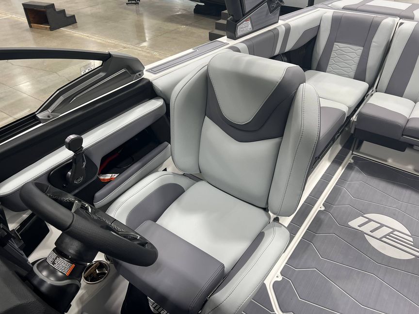 The boat features an innovative and ergonomically designed helm – the Malibu Command Center. It is emphasized by an ultra-wide, low-profile screen that provides rider and driver profiles, watersports presets, and user-friendly operations, offering a unique captainship experience.