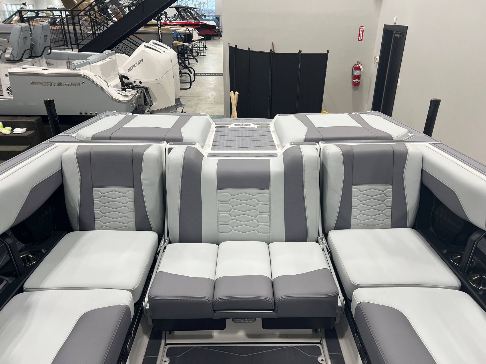 The boat integrates the advanced MaxPivot Seat™. This feature can be manipulated to create a bed at the back, or a rear-facing bench seat, easing usability. The seat can be further adjusted for comfort with or without the table flipped up.