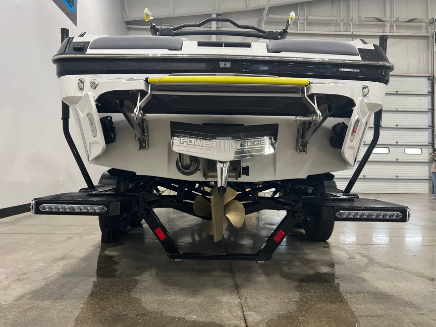 Malibu’s cutting-edge wake and wave technology sets this boat apart. This technology encompasses model-specific performance hulls, a Hard Tank Ballast System, and the patented Power Wedge® III and Surf Gate®. You can control all wave, wake, and ballast settings from the Command Center with a simple tap of a finger. Better yet, adjust surf settings, boat speed, and tower speaker volume from the water using the exclusive Surf Band wrist remote, enhancing your experience on the water.