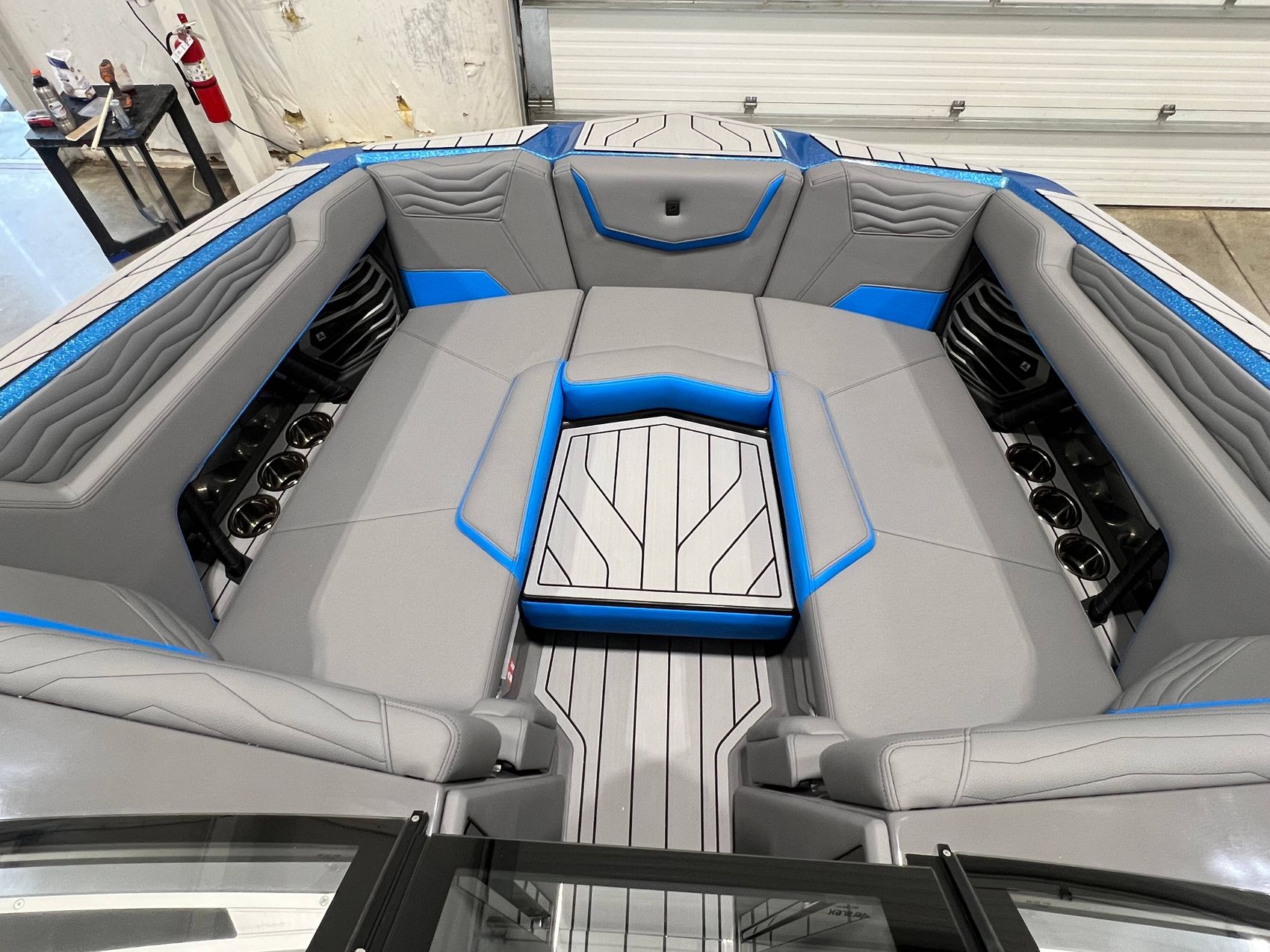 This boat is equipped with the advanced Nautique Surf System (NSS) and Nautique Configurable Running Surface (NCRS). These innovative technologies allow for customized wake shaping and automatic boat control for a refined and unique wakeboarding experience.