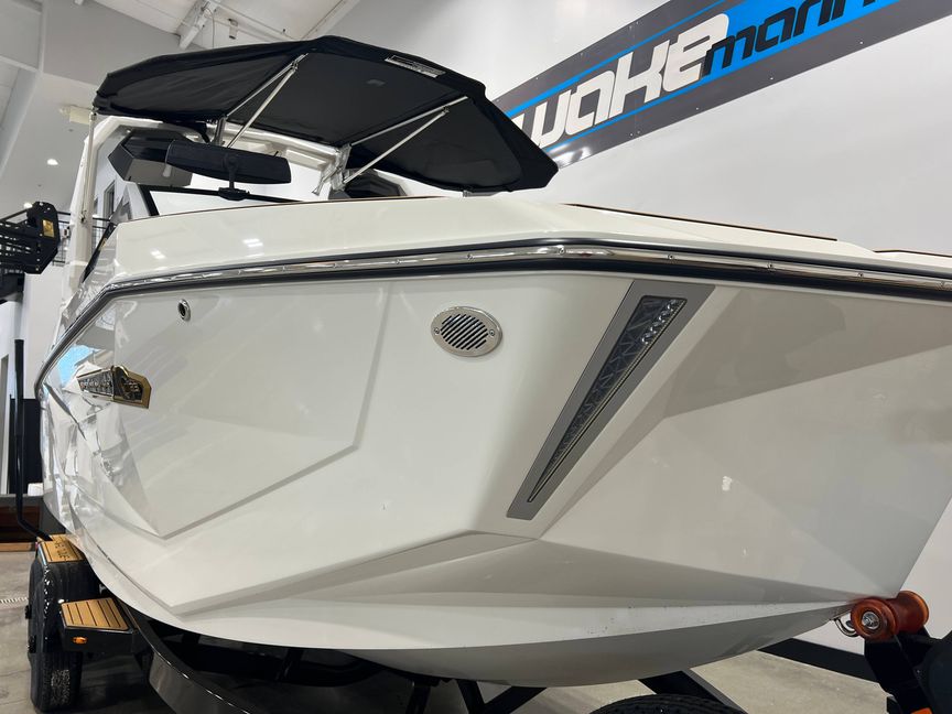 The 2026 Nautique G23 provides a bold and memorable presence on the water. With its faceted hull sides, angular bow design and the iconic Nautique visual signature, this 23-foot model is sure to leave a lasting impression.