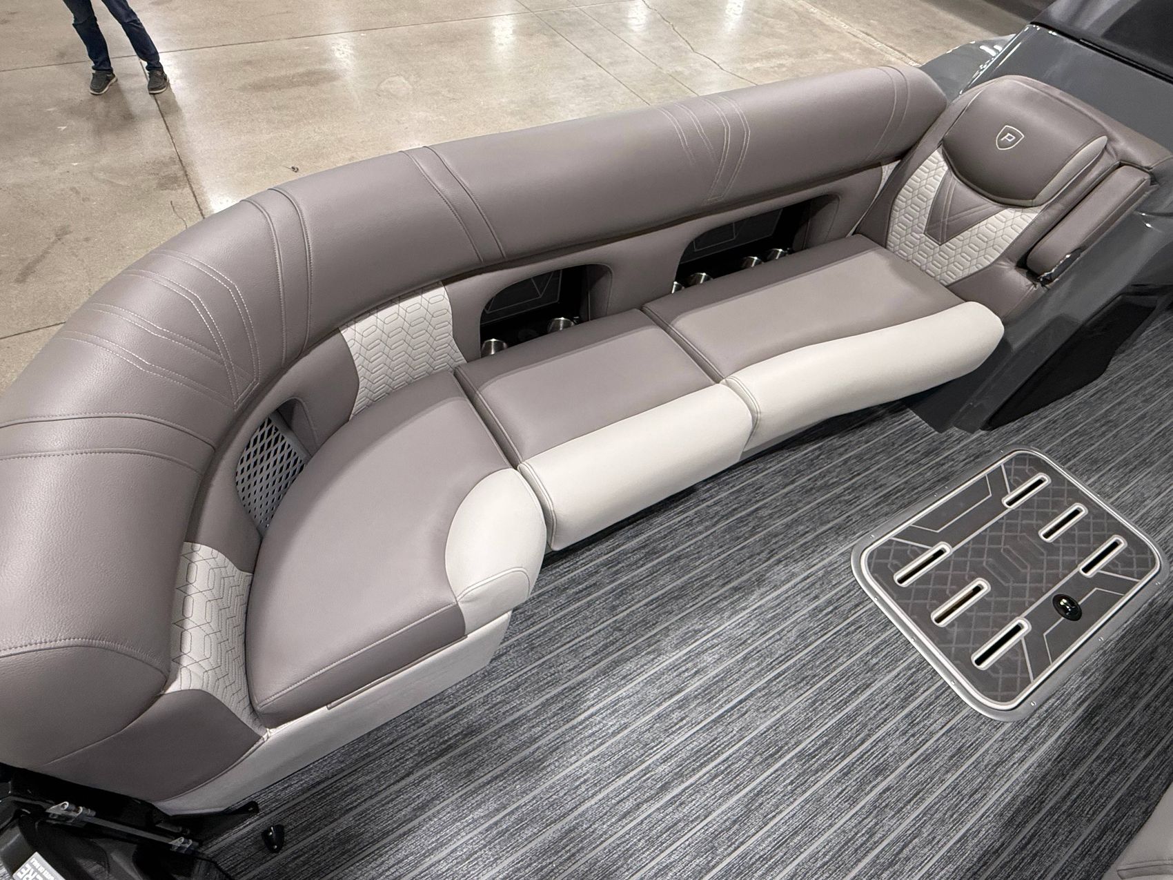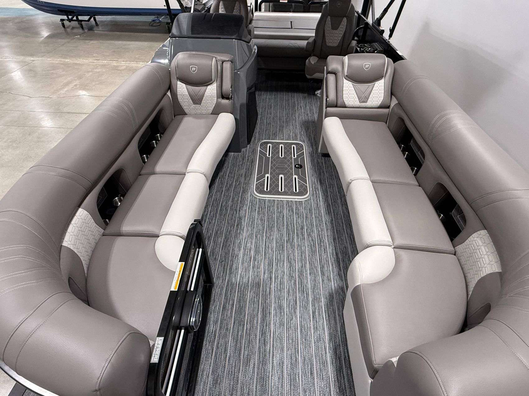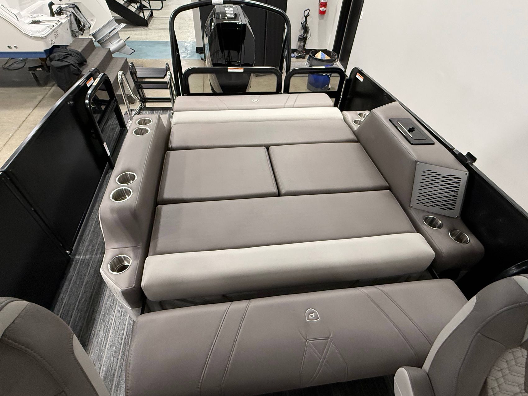 The pontoon has spacious seating arrangements that allow ample room for relaxation or socialization. Its plush upholstered seats provide ultimate comfort, ensuring a stress-free journey or lounging time.