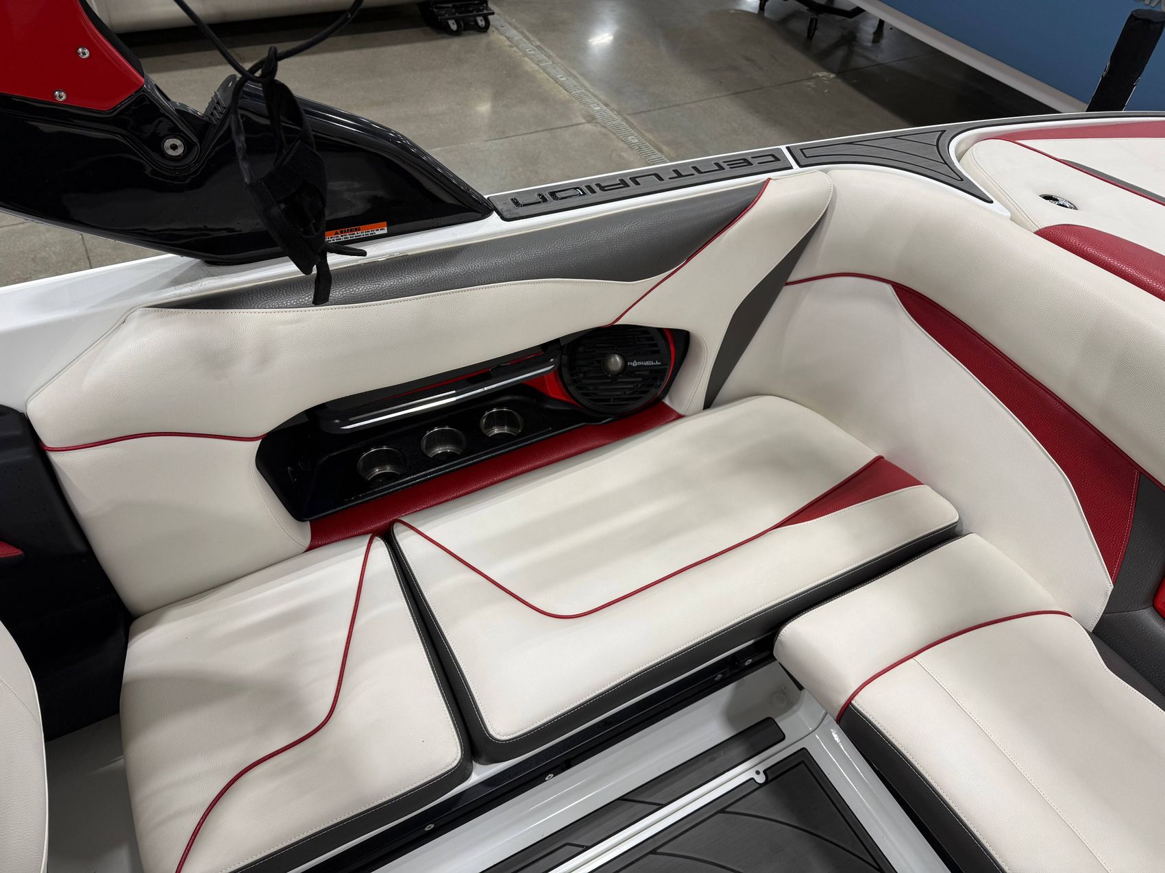The Ri217 is crafted to impress with a gamut of remarkable features. It boasts ample seating space to comfortably accommodate friends and family, an innovative audio system that delivers a superior auditory experience, an advanced wake shaping system making it a perfect choice for water activities like wakeboarding and skiing, and a powerful engine that ensures you experience smooth and swift sailings.
