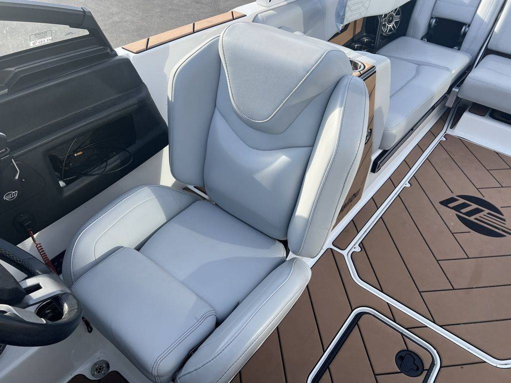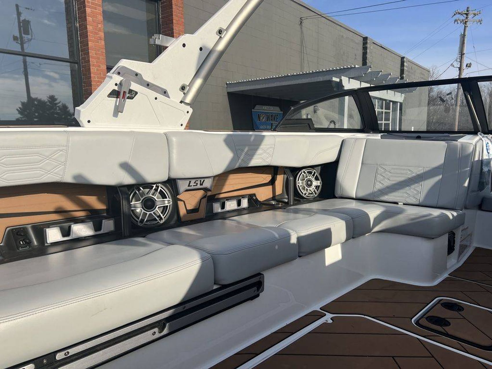 The 25 LSV is where luxury meets performance. At 25 feet, this boat is the longest in the Luxury Sport V-Drive Series. Cut through big-lake chop, double-ups and rolling surf waves with the sleek traditional bow even while fully loaded with an 18-person crew and topped-off ballast. Stretch out and grab some sun in the oversized wraparound lounge, or convert the space into a dining room with the Multi View Wake Bench. In a boat this roomy with all these amenities, the only thing you’ll be leaving behind is the dock.