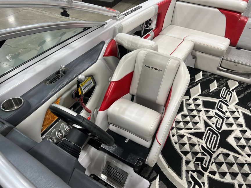 This Super Air Nautique 230 comes with a snap-in crest carpet, assuring you a relaxed and comfortable boating experience. It boasts a super-low dash for ideal visibility, side seat backs to face the action, and a convertible rear bench for optimum relaxation and viewing.