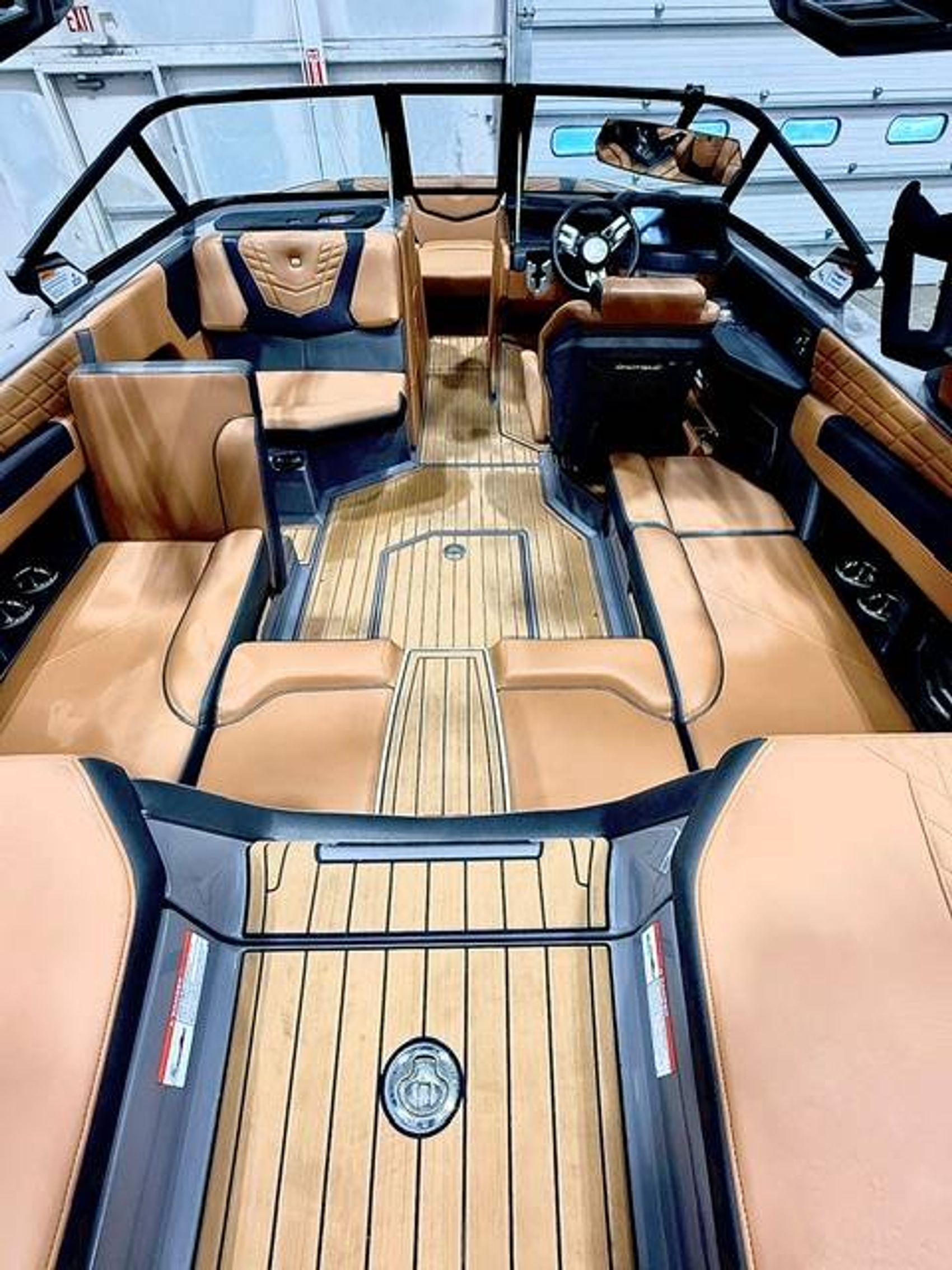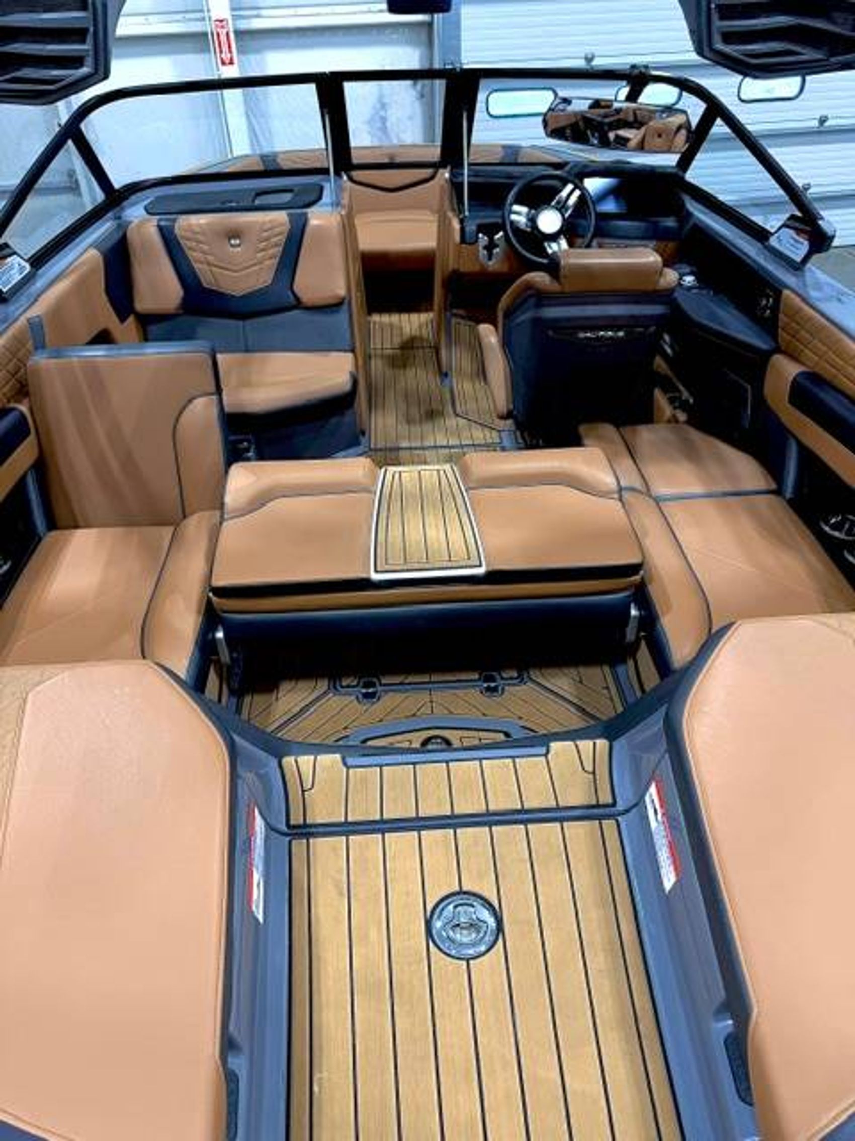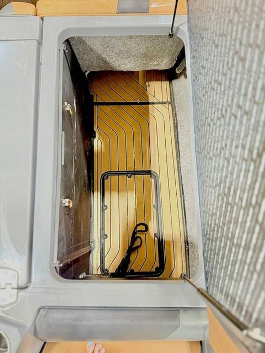 The G21 also features a beautiful Nauteak Non-Skid covered rear walk-through area for secure navigation between the lounge and swim platform areas. This passage, covered in a non-skid material, ensures secure foothold, facilitating ease of movement and top-notch safety, reaffirming the G21 as an ideal family boat.
